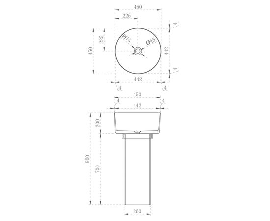 БрендAbber Тип раковиныНапольная Ширина, см45 Глубина, см45 Высота, см90 ФормаКруглая МатериалПолиэфирная смола СтранаГермания Гарантия5 лет