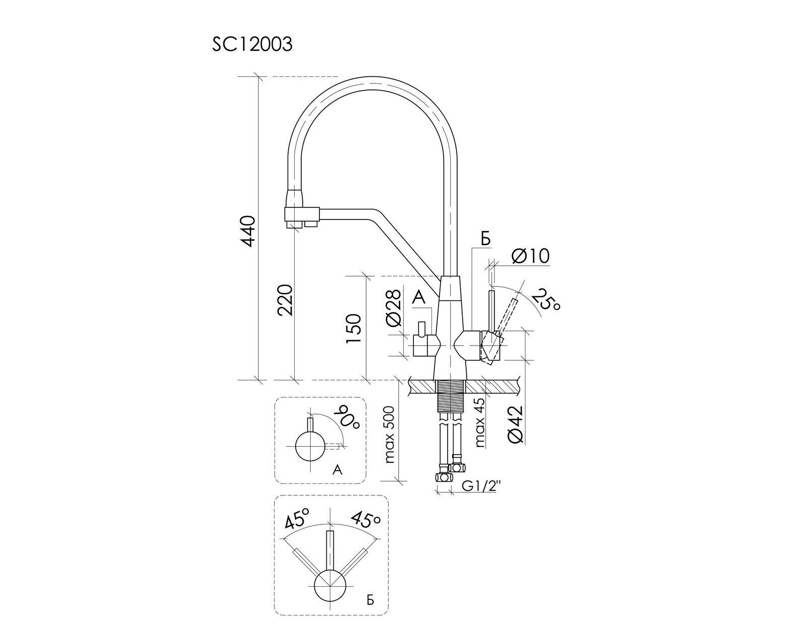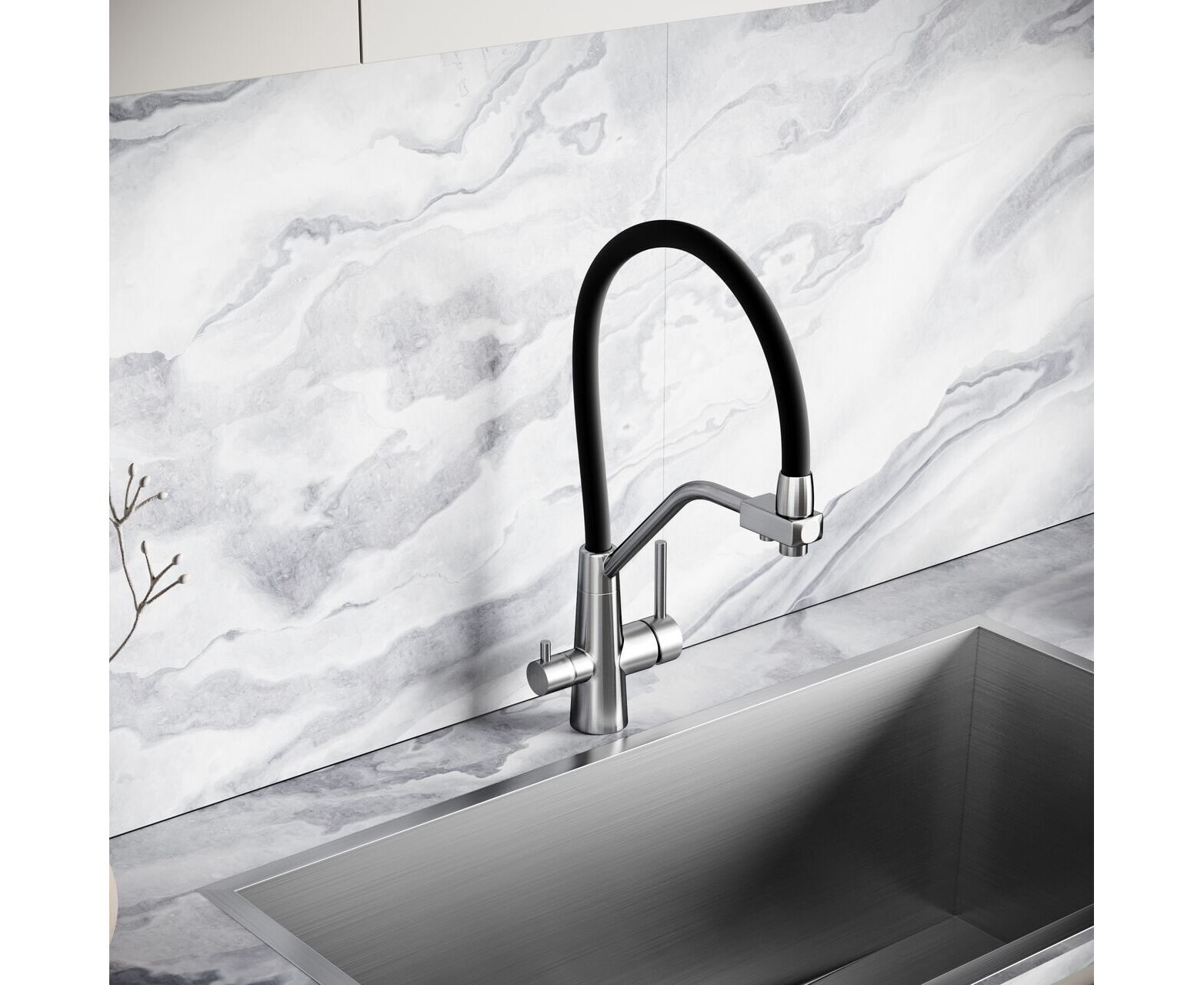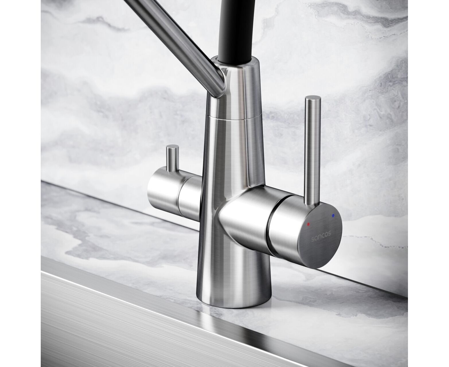 Смеситель дл кухни из нержавеющей стали Sancos Nolia с краном для фильтра и гибким изливом SC12003SS