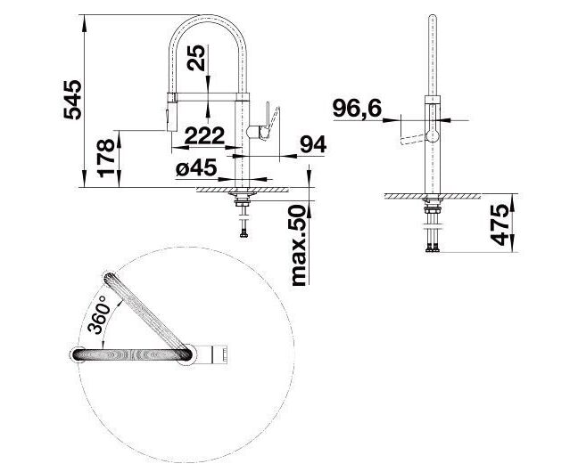 Характеристики Смеситель для кухни Blanco Culina-S нержавеющая сталь 517598