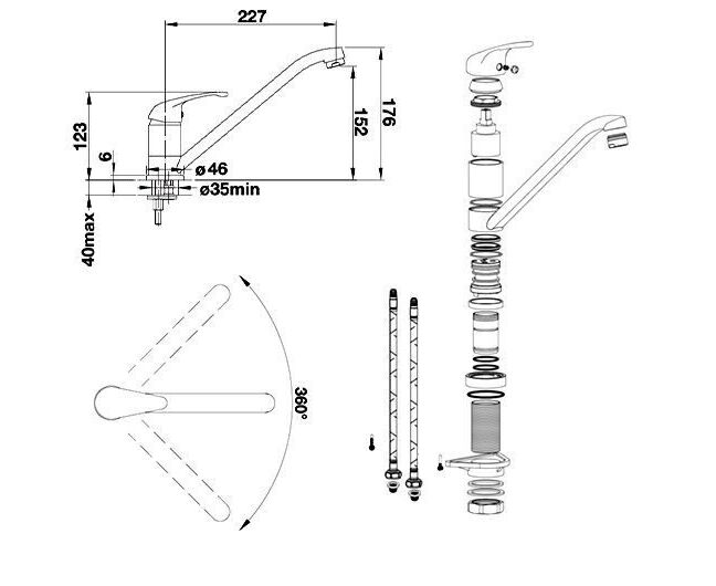 Вид крепления смесителя: на гайке. Лейка: нет. Наличие излива: с изливом. Исполнение излива: поворотный. Покрытие: устойчивое к царапинам. Установка: на раковину, на столешницу, вертикальный.
