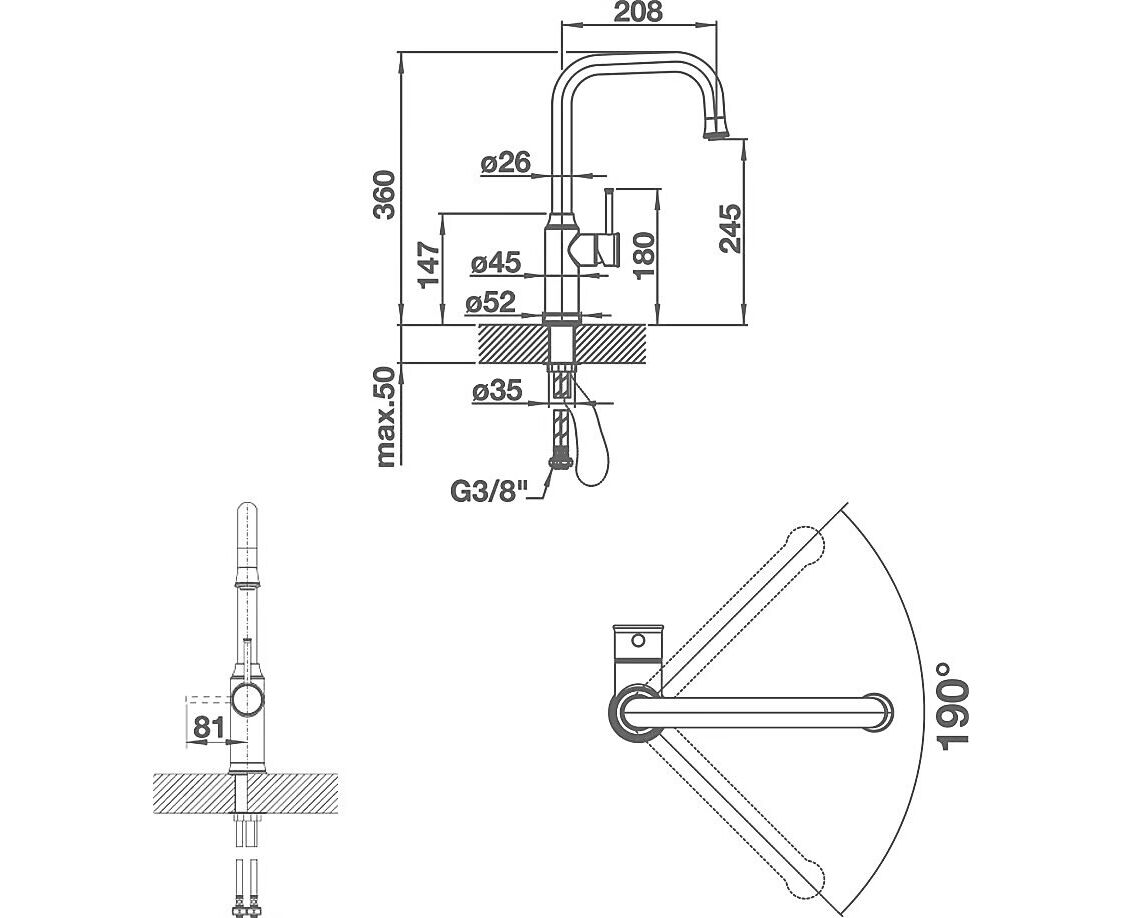 Вид крепления смесителя: на гайке. Лейка: да. Наличие излива: с изливом. Исполнение излива: поворотный, выдвижной. Покрытие: pvd. Установка: на раковину, на столешницу.