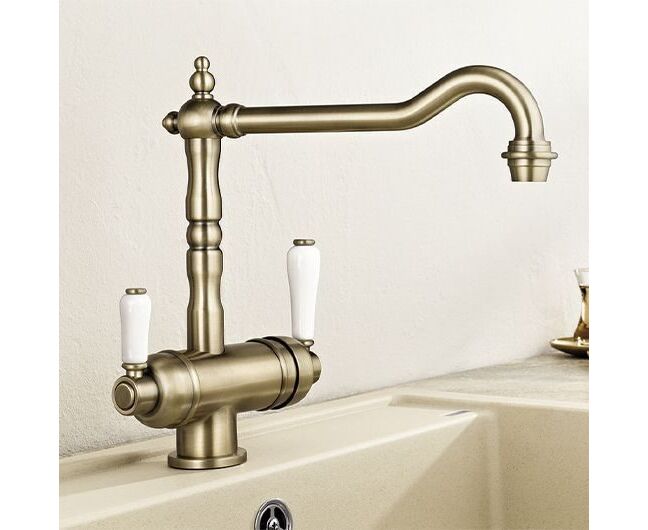 Вид крепления смесителя: на гайке. Лейка: нет. Наличие излива: с изливом. Исполнение излива: поворотный, совмещенный излив для питьевой воды. Покрытие: устойчивое к царапинам. Установка: на раковину, на столешницу.