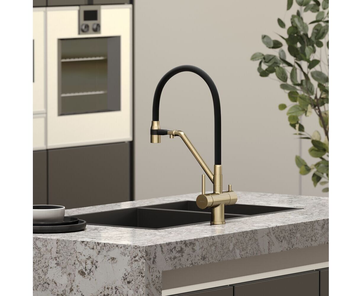 Смеситель для кухни Sancos Dora брашированное золото PVD покрытие SC4003BG