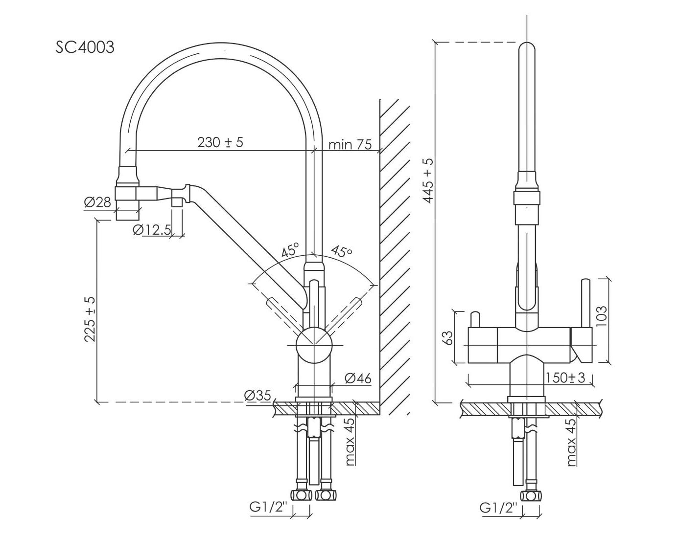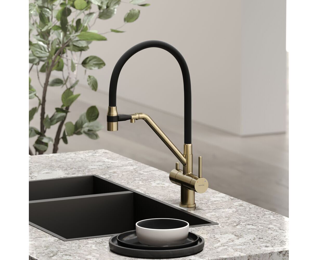 Характеристики Смеситель для кухни Sancos Dora брашированное золото PVD покрытие SC4003BG