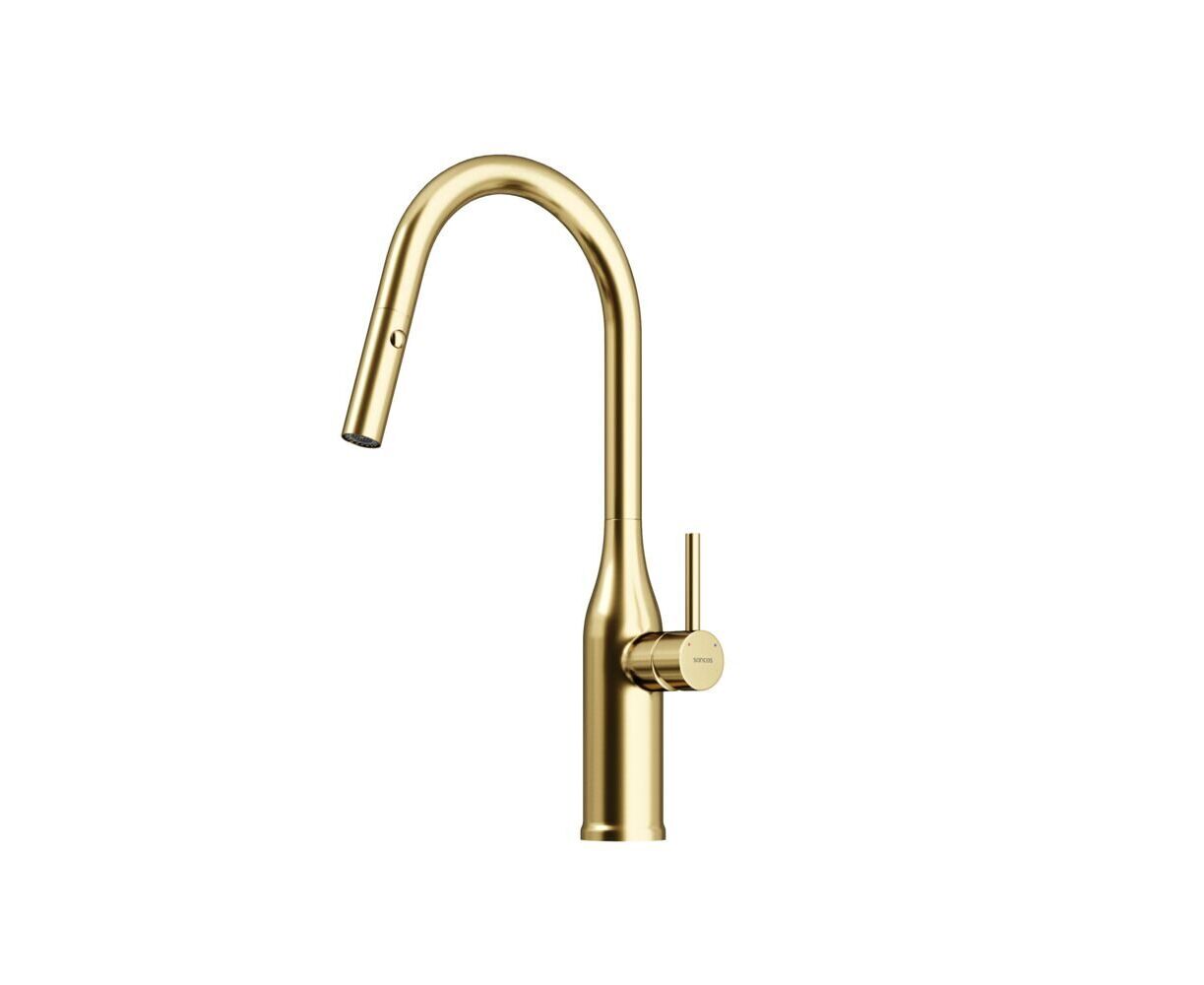 Смеситель для кухни Sancos Grand с вытяжным изливом брашированное золото PVD покрытие SC4002BG