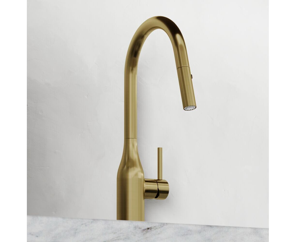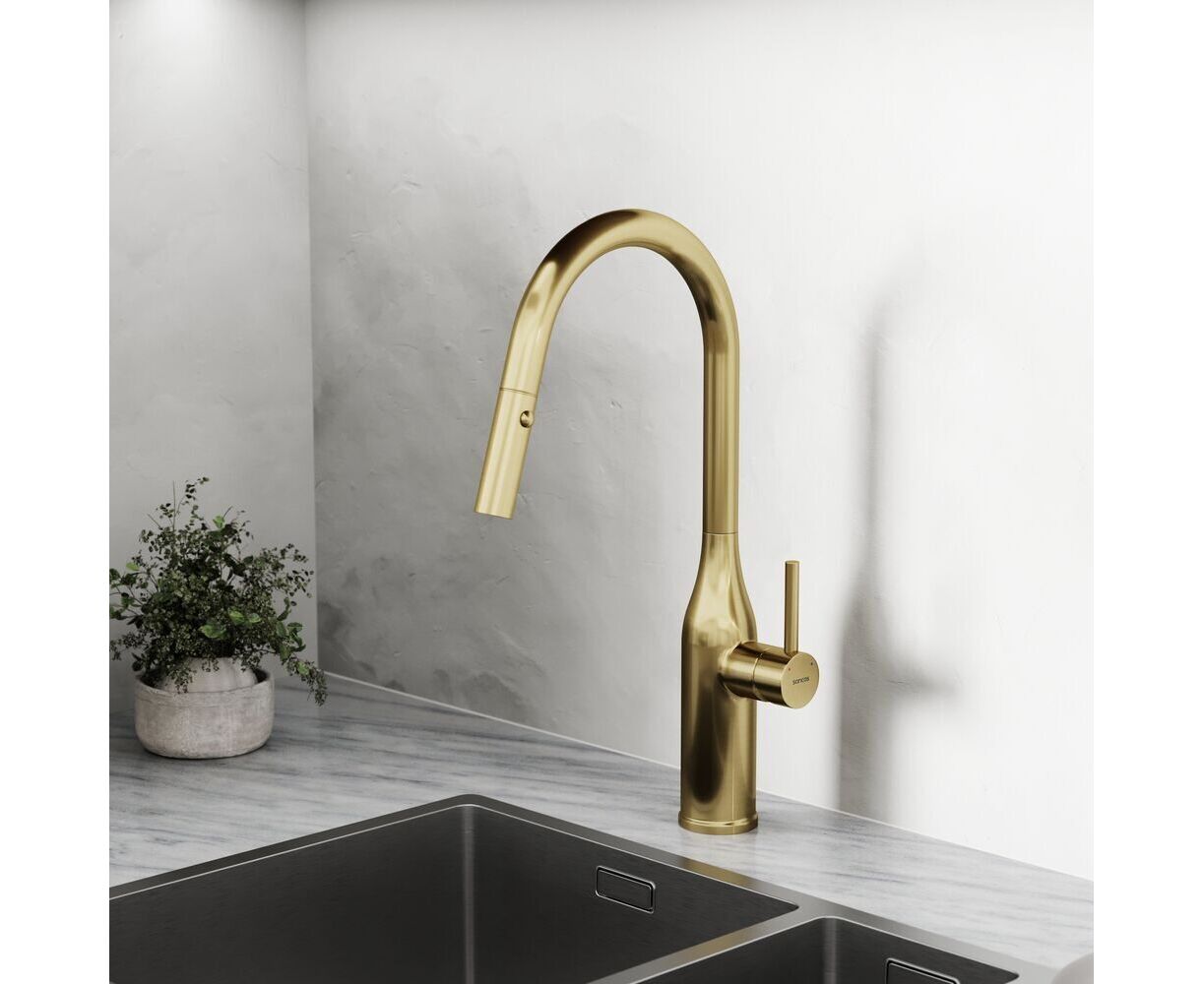 Характеристики Смеситель для кухни Sancos Grand с вытяжным изливом брашированное золото PVD покрытие SC4002BG