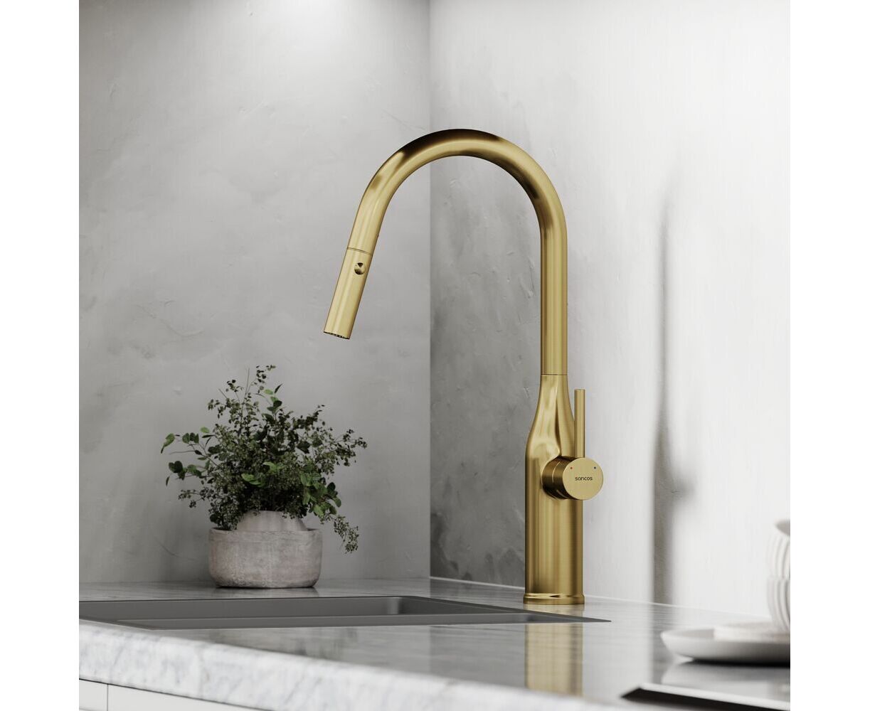Отзывы о Смеситель для кухни Sancos Grand с вытяжным изливом брашированное золото PVD покрытие SC4002BG от реальных покупателей
