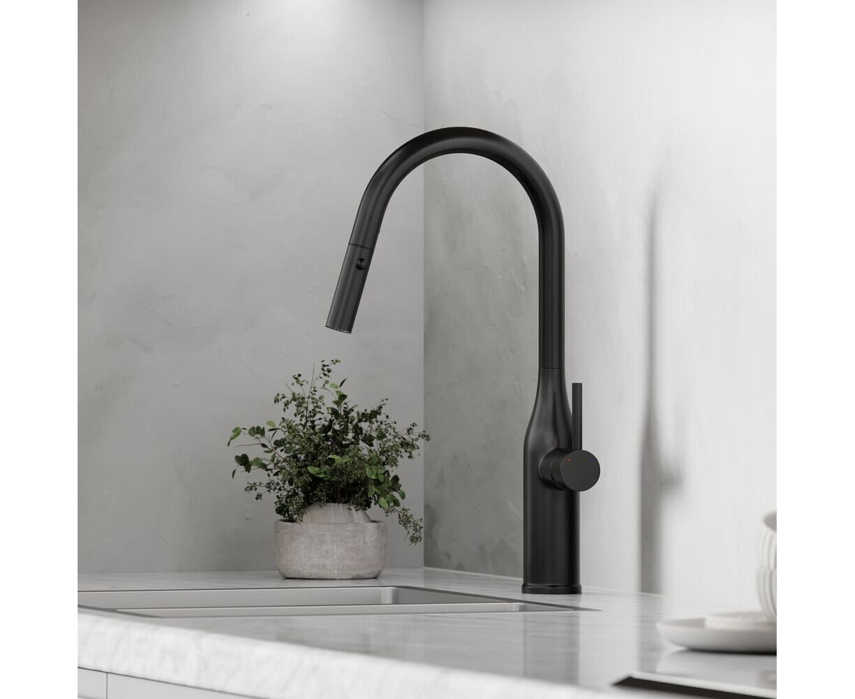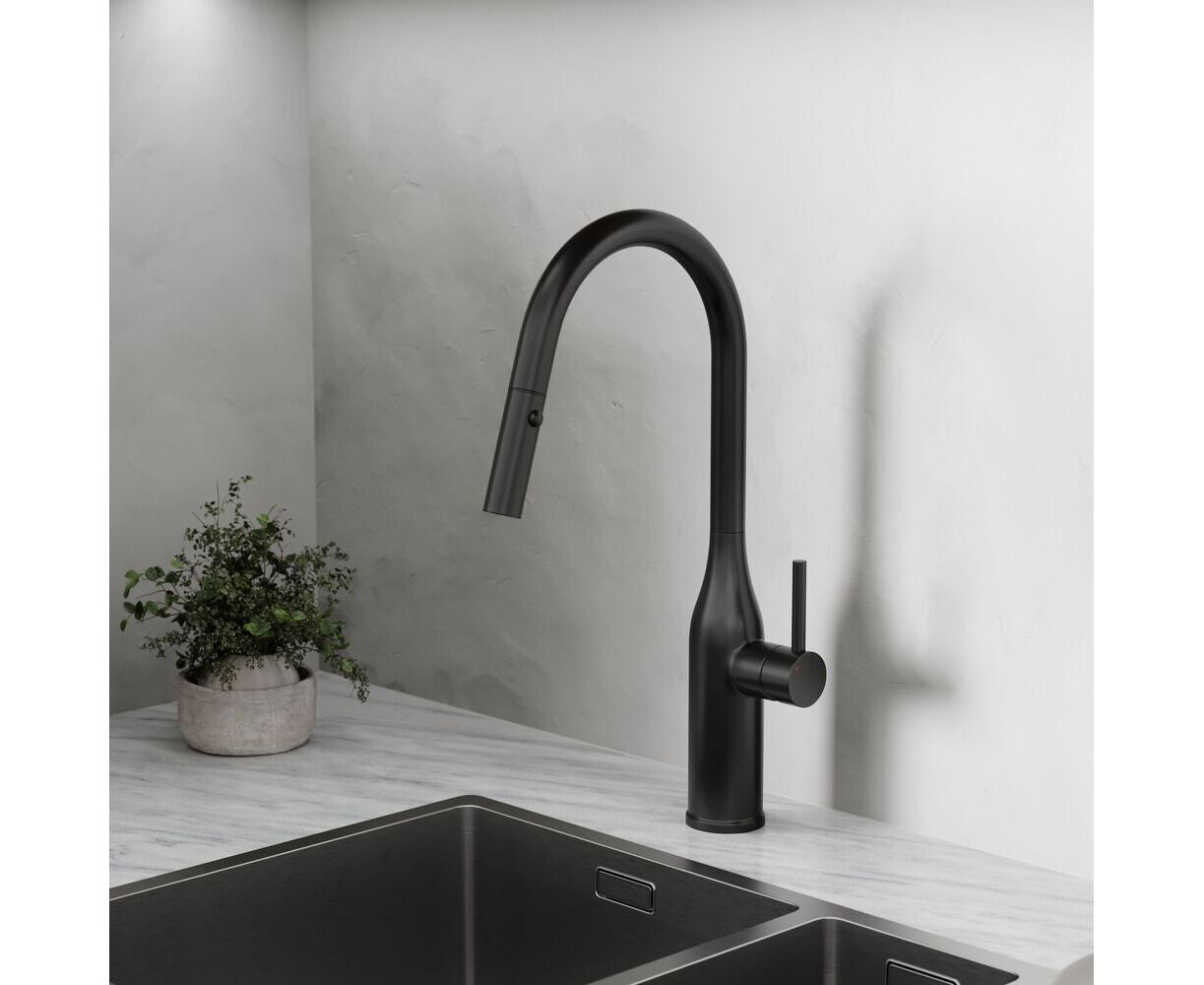 Смеситель для кухни Sancos Grand с вытяжным изливом матовый черный SC4002MB