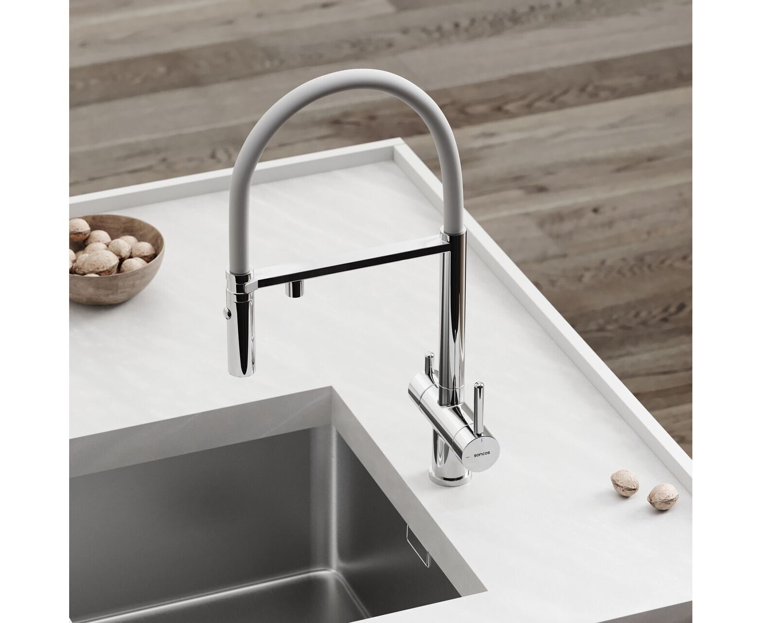 Смеситель для кухни Sancos Imola хром с белым изливом SC4010CHwh