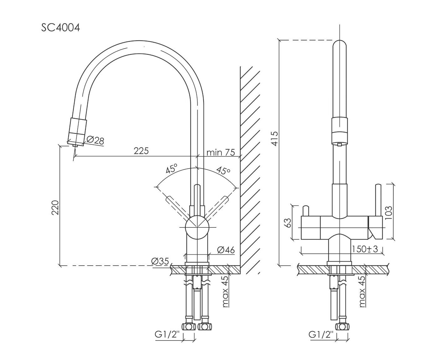 Характеристики Смеситель для кухни Sancos Lucia вороненая сталь SC4004GG
