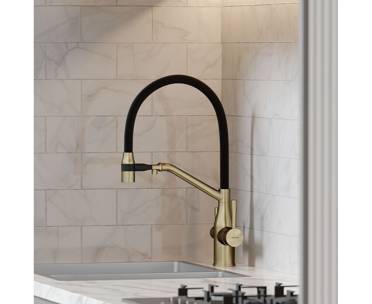 Отзывы о Смеситель для кухни Sancos Orta брашированное золото PVD покрытие SC4008BG от реальных покупателей