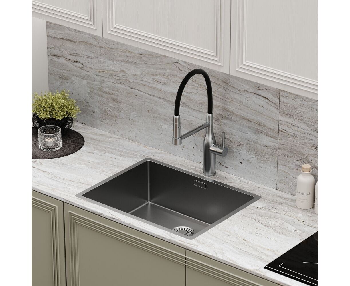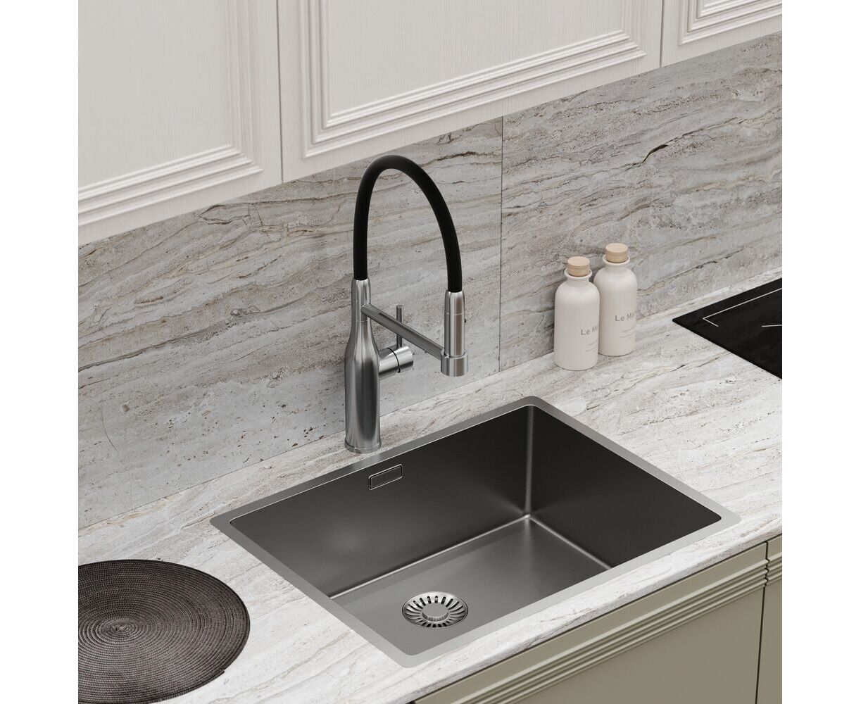 Смеситель для кухни Sancos Pride с гибким изливом нержавеющая сталь SC4011BNG