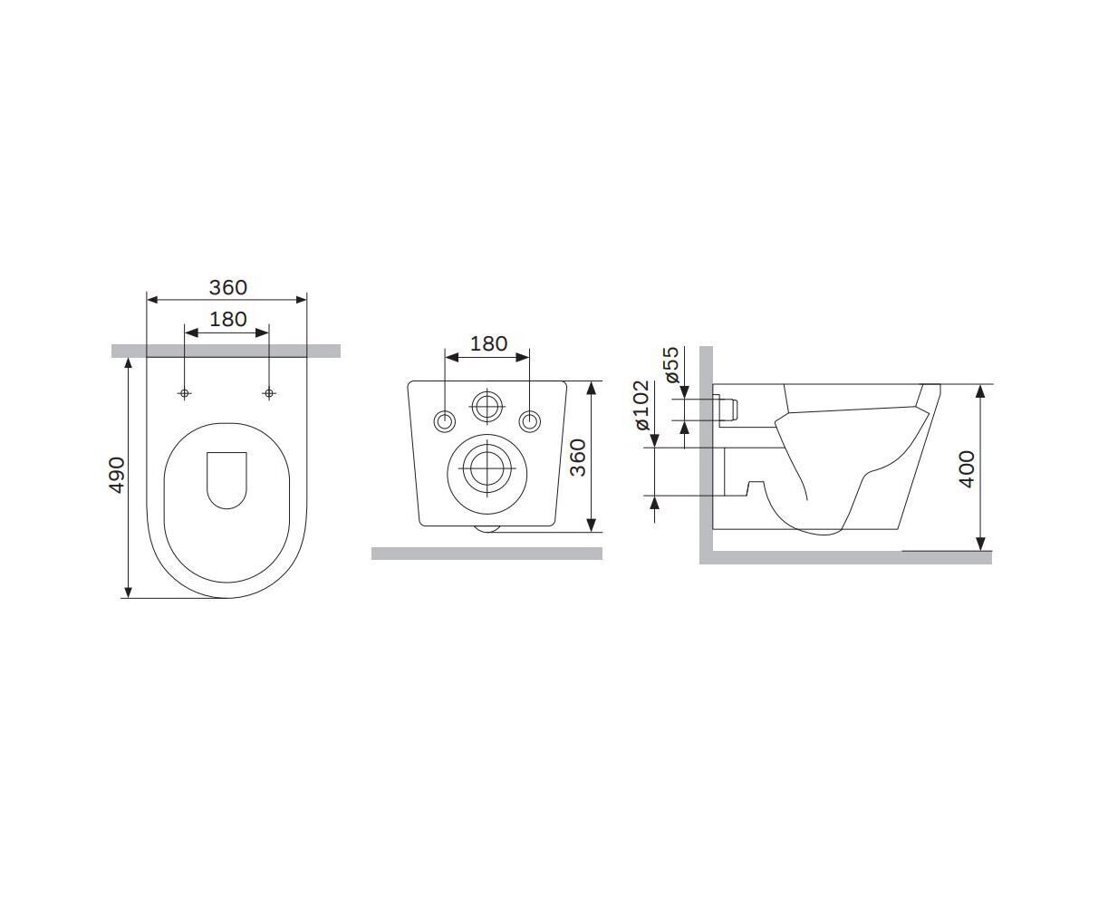 БрендAm.Pm МатериалФарфор Длина унитаза, см49 Ширина унитаза, см36 Высота унитаза, см36 Направление выпускаГоризонтальное (в стену) СтранаГермания Гарантия25 лет