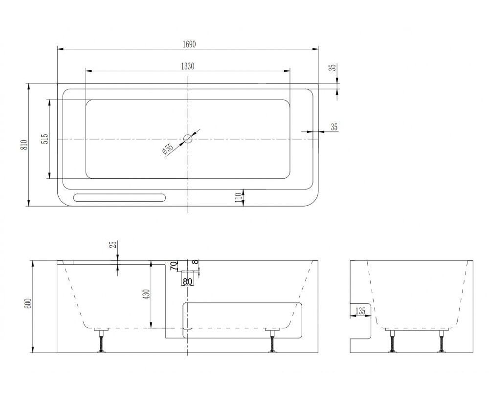 Модификация: универсальная. Установка: пристенная. Форма: прямоугольная. Материал: акрил. Цвет: белый. Объем, л: 330. Антискользящее покрытие: нет.
