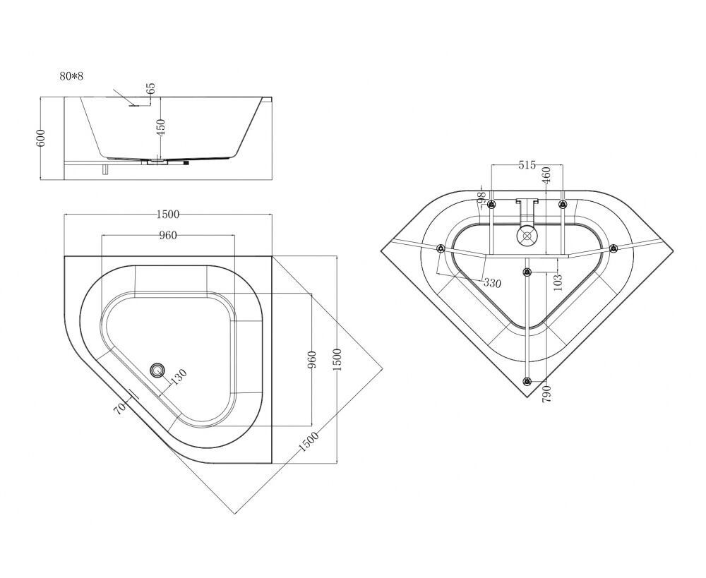 Модификация: универсальная. Установка: пристенная. Форма: угловая. Материал: акрил. Цвет: белый. Объем, л: 380. Антискользящее покрытие: нет.