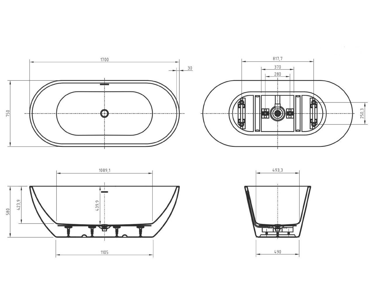 БрендBelBagno Длина, см170 Ширина, см75 Глубина, см44 Высота с опорой, см58 ФормаОвальная МатериалАкрил СтранаИталия Гарантия10 лет