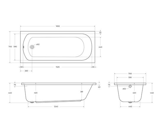 Характеристики Акриловая ванна CEZARES ECO-165-70-41-W37 165x70x41