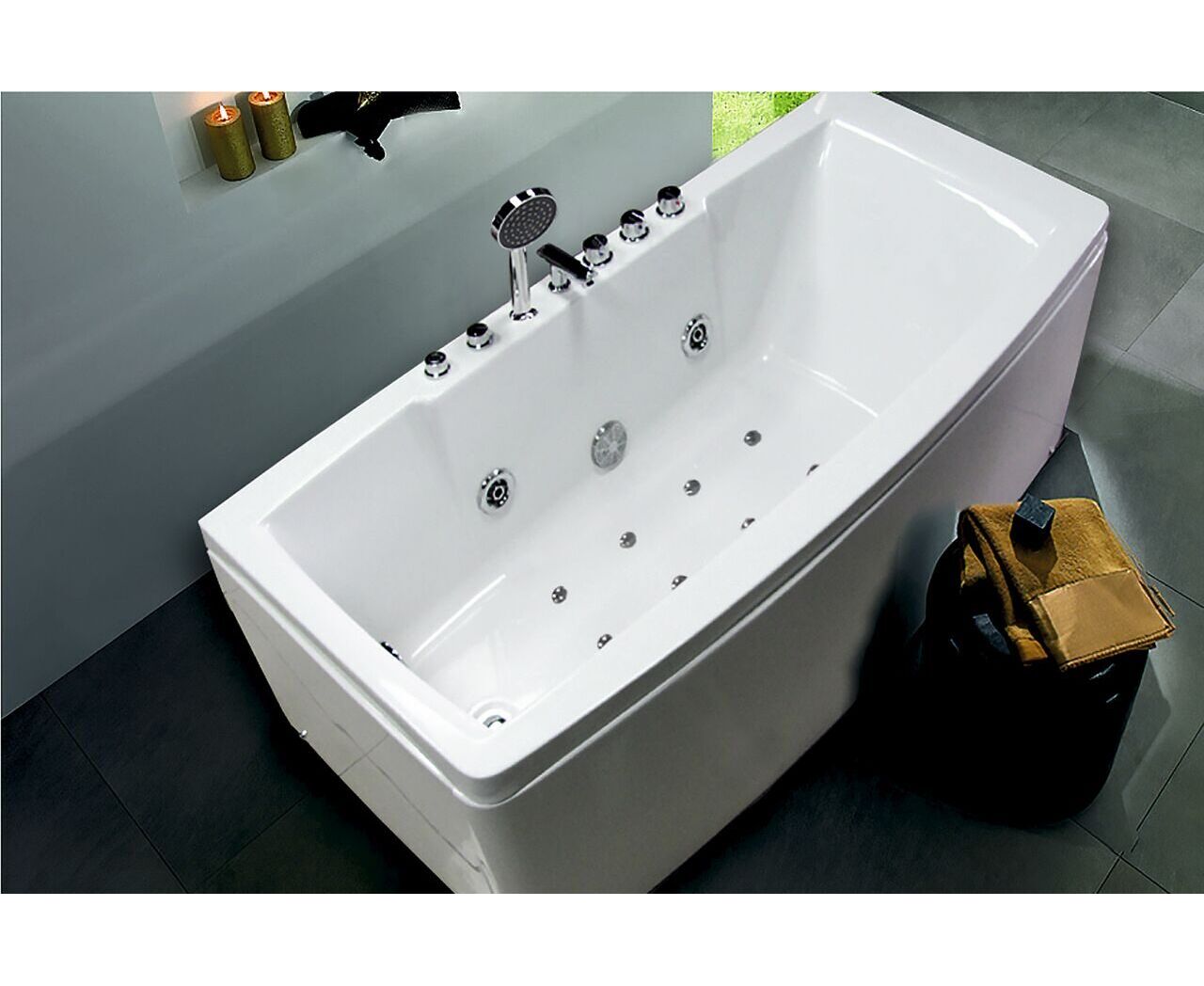 Форма: асимметричная. Длина: 170 см. Ширина: 85 см. Толщина листа: 0,5 см. Антискользящее покрытие: нет. Расположение перелива: стандартное. Ручки: нет, установка не предусмотрена. Монтаж: пристенная.