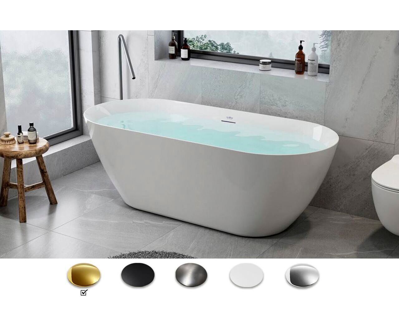 Форма: овальная. Длина: 150 см. Ширина: 73 см. Толщина листа: 0,5 см. Антискользящее покрытие: нет. Расположение перелива: по центру. Ручки: нет, установка не предусмотрена. Монтаж: отдельностоящая.