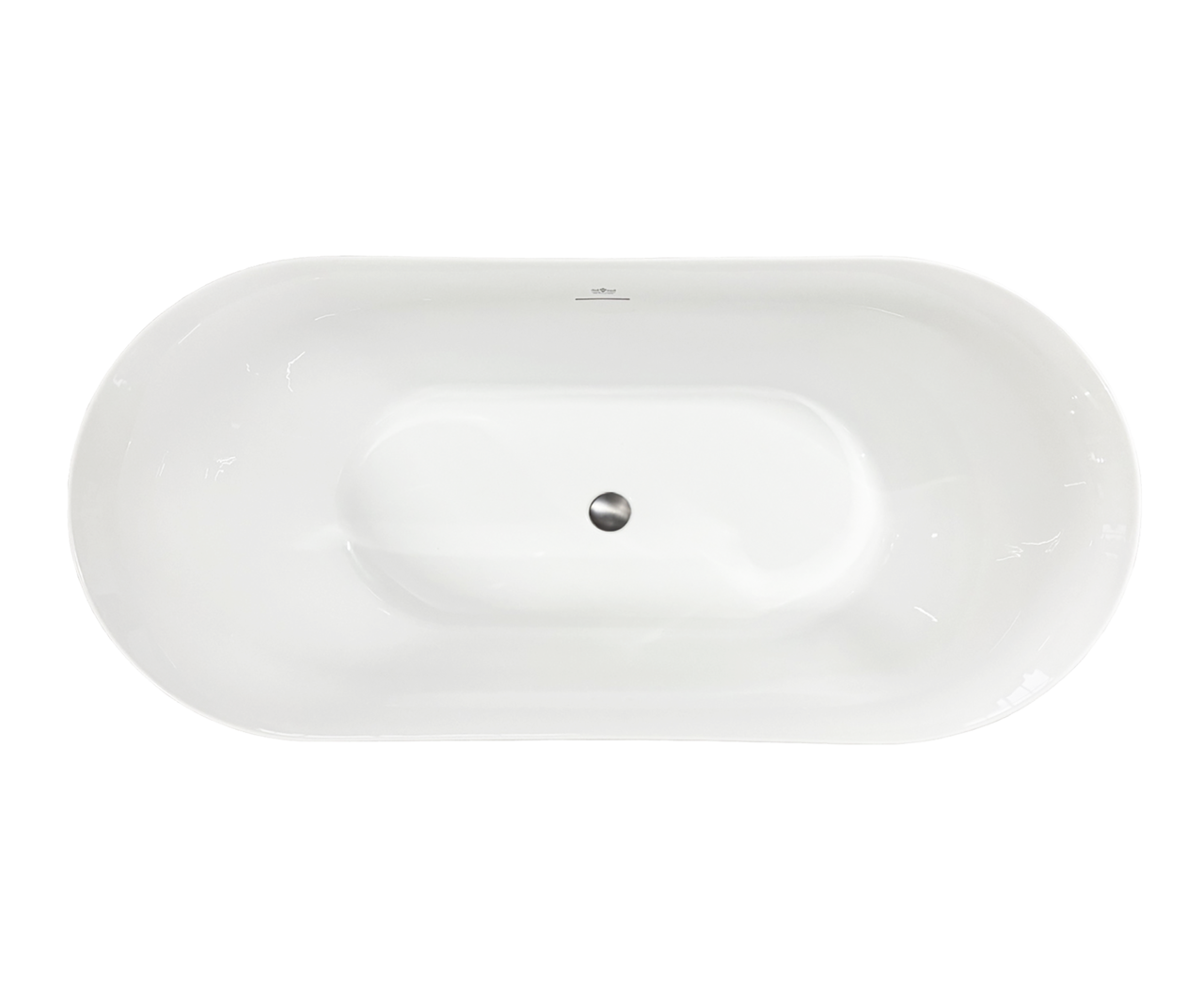 Форма: овальная. Длина: 150 см. Ширина: 73 см. Толщина листа: 0,5 см. Антискользящее покрытие: нет. Расположение перелива: по центру. Ручки: нет, установка не предусмотрена. Монтаж: отдельностоящая.