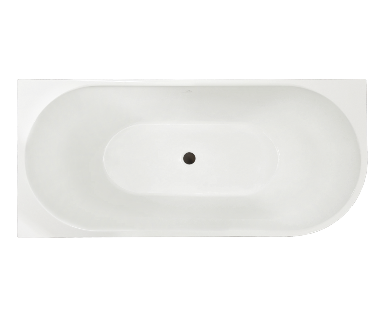 Форма: асимметричная. Длина: 150 см. Ширина: 75 см. Толщина листа: 0,5 см. Антискользящее покрытие: нет. Расположение перелива: по центру. Ручки: нет, установка не предусмотрена. Монтаж: пристенно-угловая.