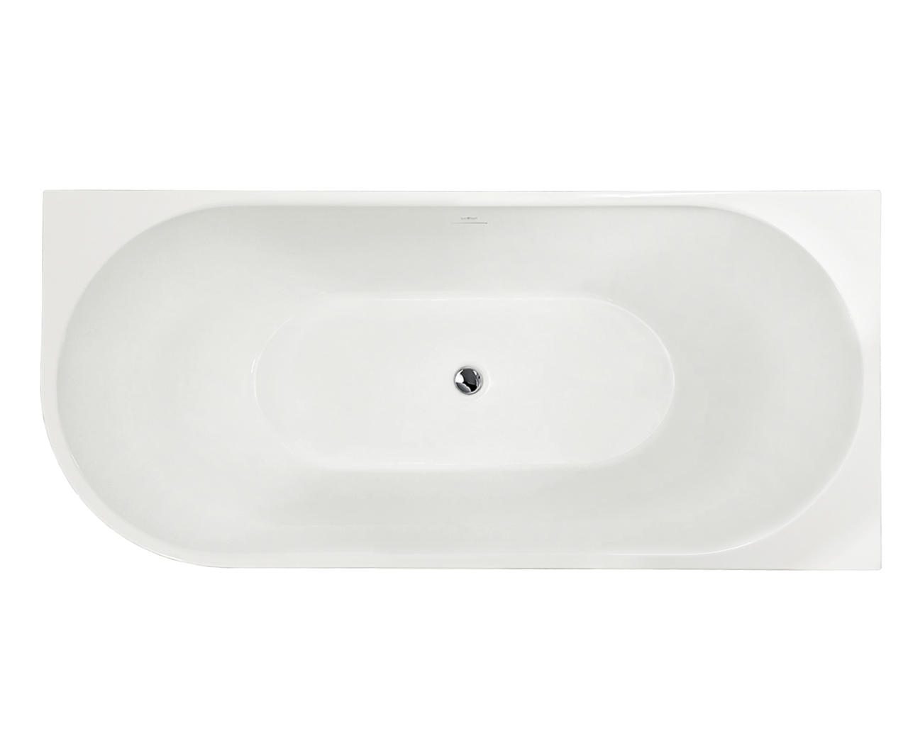 Форма: асимметричная. Длина: 150 см. Ширина: 75 см. Толщина листа: 0,5 см. Антискользящее покрытие: нет. Расположение перелива: по центру. Ручки: нет, установка не предусмотрена. Монтаж: пристенно-угловая.