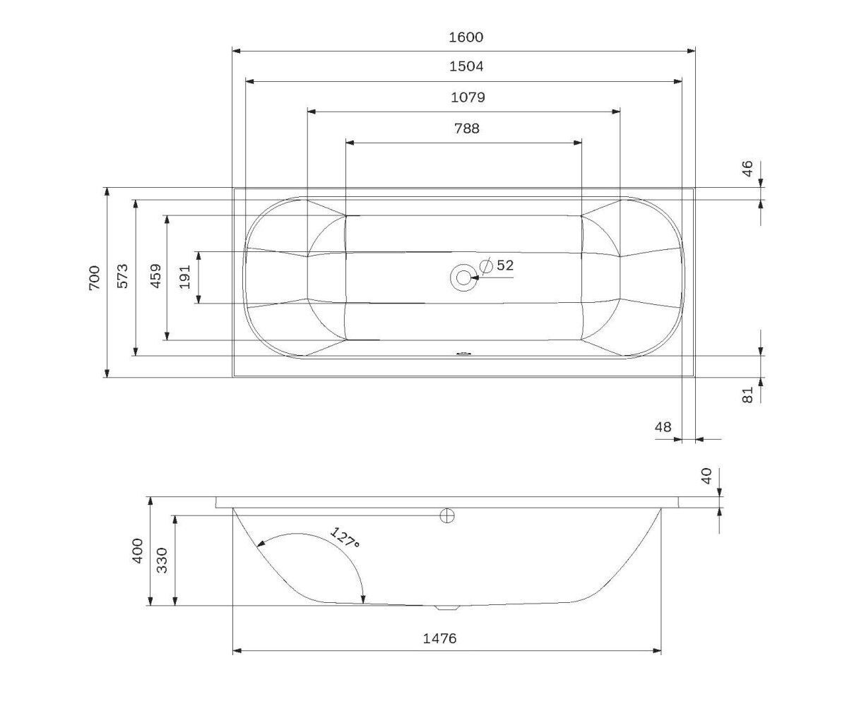 Впервые в доступном сегменте ванна центральным сливом-переливом (признак премиального сегмента). Большое внутреннее пространство. Широкий функциональный борт-полка шириной 81 мм для хранения принадлежностей