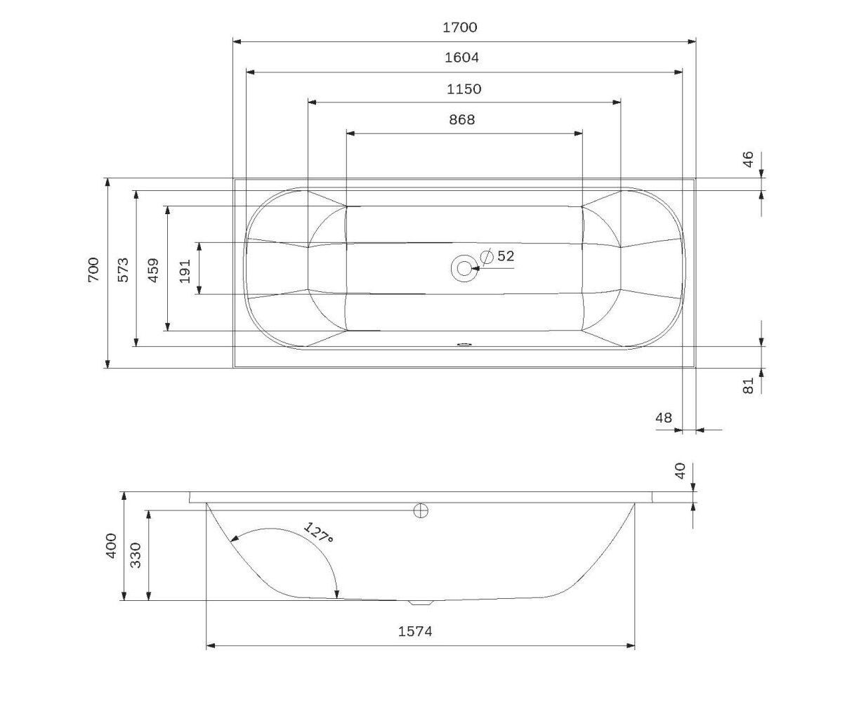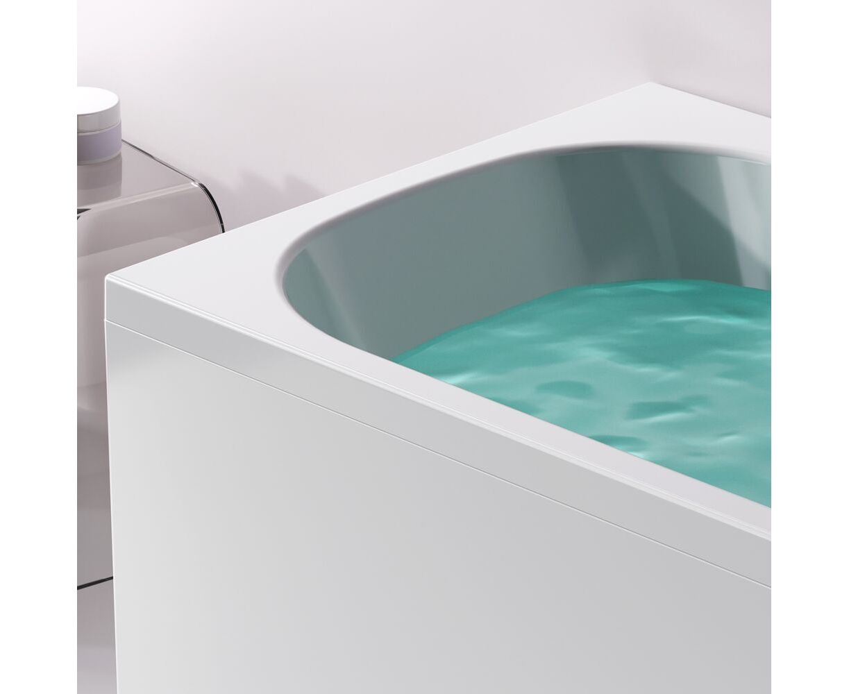 Впервые в доступном сегменте ванна центральным сливом-переливом (признак премиального сегмента). Большое внутреннее пространство. Широкий функциональный борт-полка шириной 81 мм для хранения принадлежностей