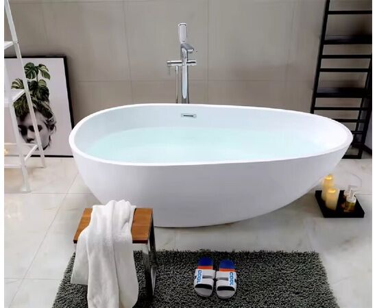 Акриловая отдельностоящая ванна MIMI150 бренда Ceruttispa в современном стиле Modern c антискользящим покрытием выполнена в классическом белом цвете и имеет ассиметричную форму.