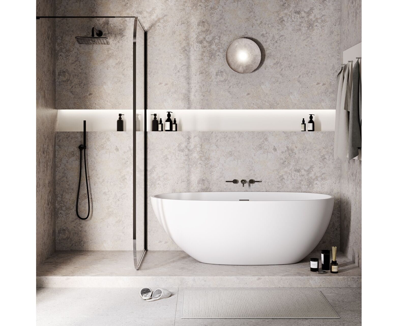 Ванна изготовлена из акрилового листа толщиной 5 мм, что обеспечивает прочность и долговечность изделия. Акриловый материал также приятен на ощупь и сохраняет тепло воды на длительное время, создавая комфорт при принятии ванны. Ванна выполнена в черном матовом цвете.
