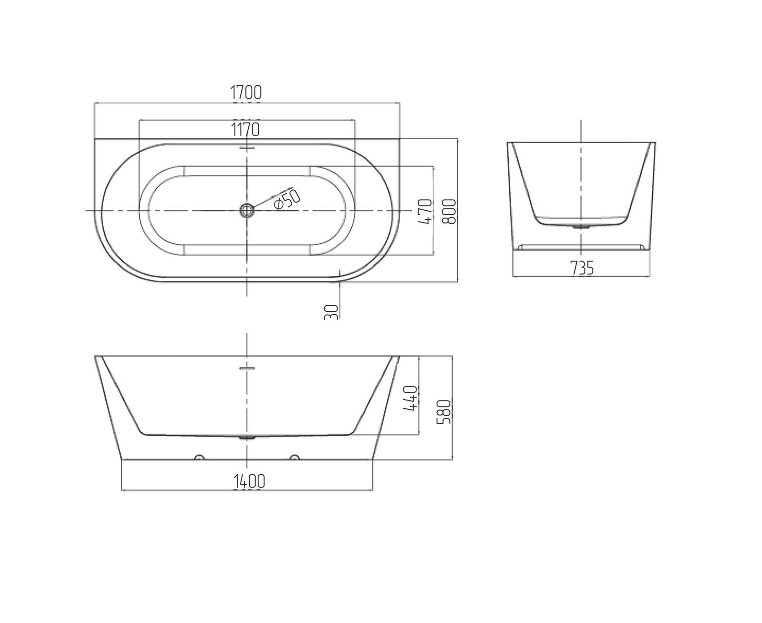 Ванна пристенная Grossman Cristal GR-17072 170x80x58