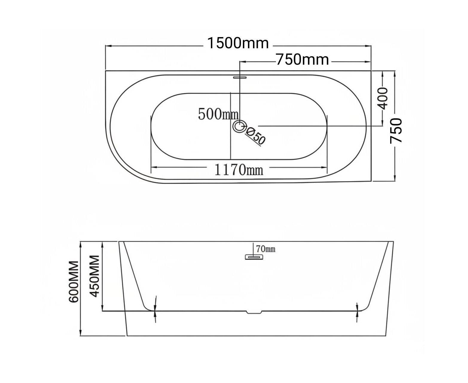 Характеристики Ванна пристенная Grossman Cristal GR-2203L 75х150х58