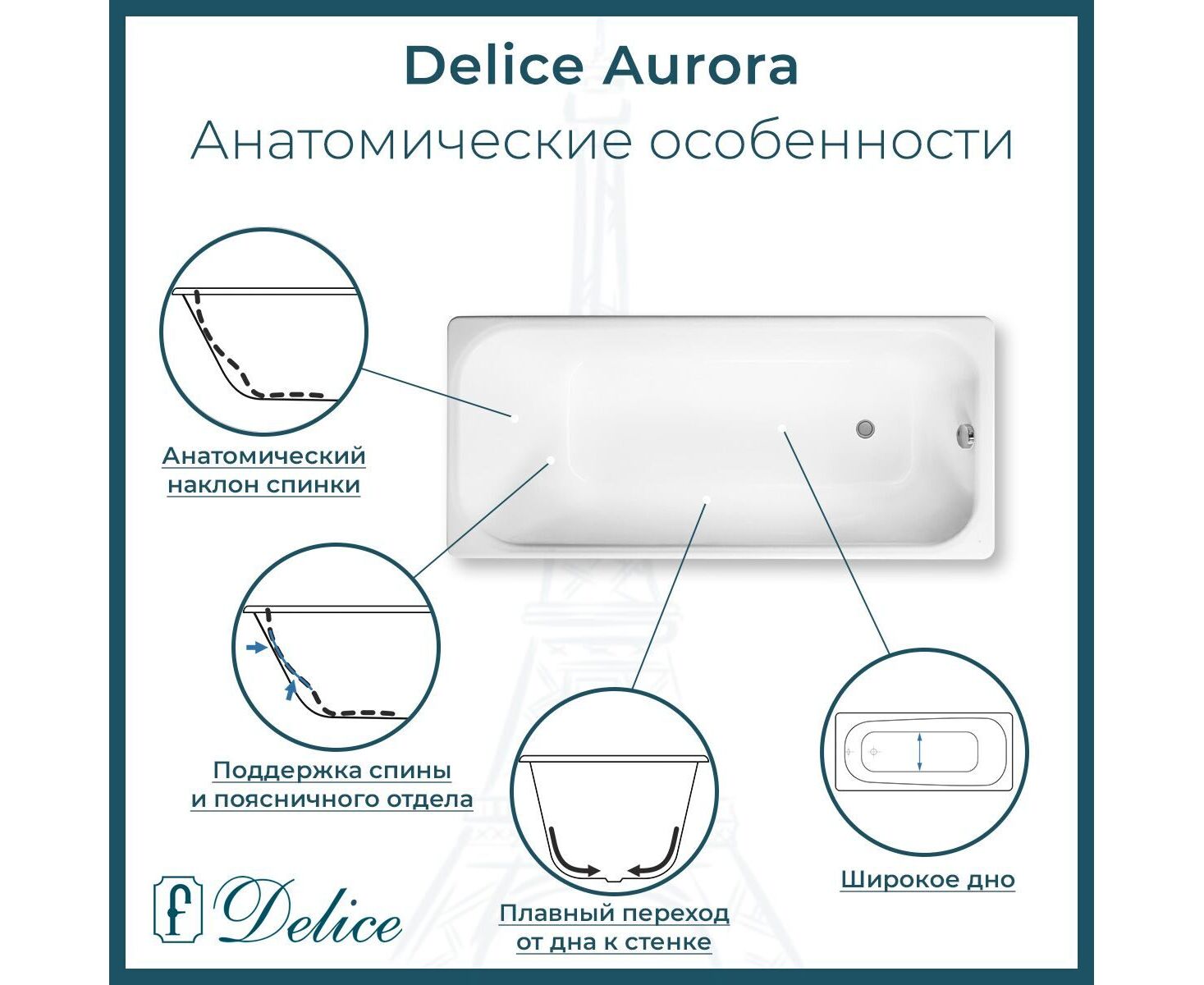 Данная модификация Delice Aurora выполнена с гладким дном. Такой вариант ванны очень прост в уходе, не требует времени и дополнительных усилий при чистке. Имеет безупречный внешний вид, который остается неизменным в течение всего периода службы.