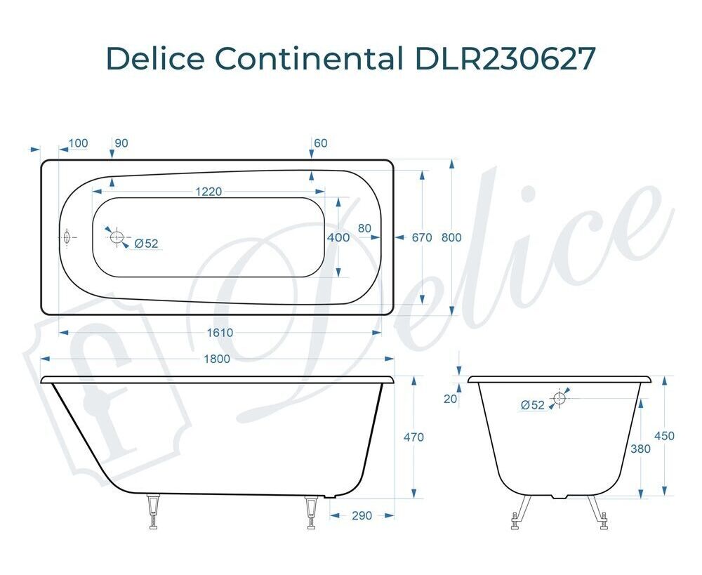 Характеристики Ванна чугунная Delice Continental 180х80 DLR230627