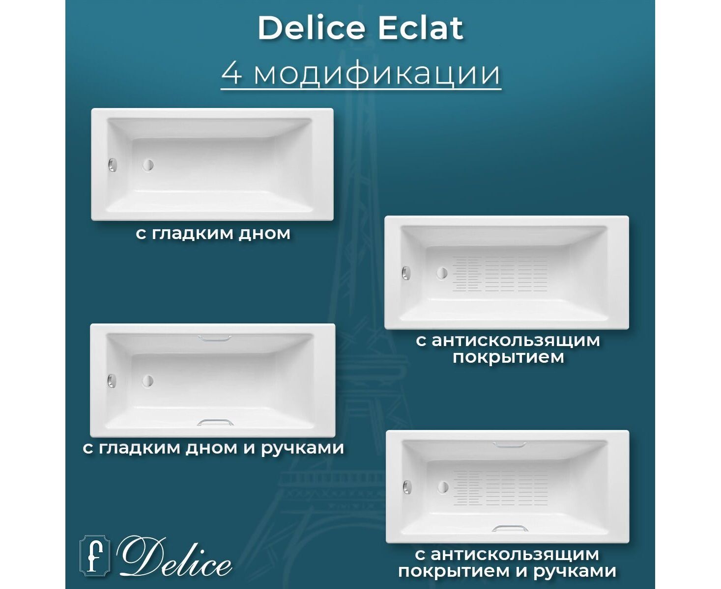 Данная модификация Delice Eclat выполнена с гладким дном. Такой вариант ванны очень прост в уходе, не требует времени и дополнительных усилий при чистке. Имеет безупречный внешний вид, который остается неизменным в течение всего периода службы.