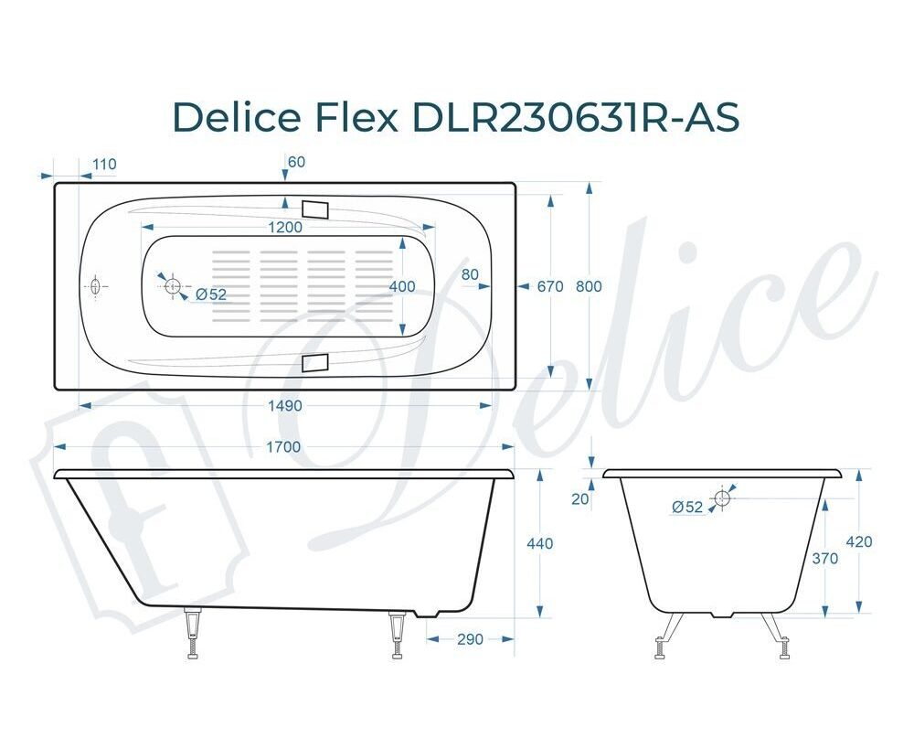 Данная модификация Delice Flex имеет противоскользящее покрытие дна, которое гарантирует безопасный и комфортный прием ванны и душа. Покрытие наносится специальным оборудованием на производстве в виде тонких полос, практически не заметно визуально и не ощущается при использовании.