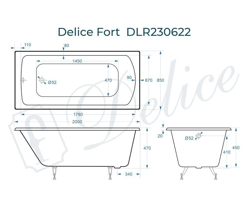Для установки используются фирменные ножки Delice, которые имеют надежное и прочное крепление, обеспечивают высокую устойчивость ванны и регулируются по высоте. Высота на ножках варьируется от 59 до 63.5 см. Ножки выполнены из высокопрочного чугуна марки СЧ25, который выдерживает большие нагрузки. Для модели Fort подходит комплект ножек для серии Elite - артикул DLR000033.