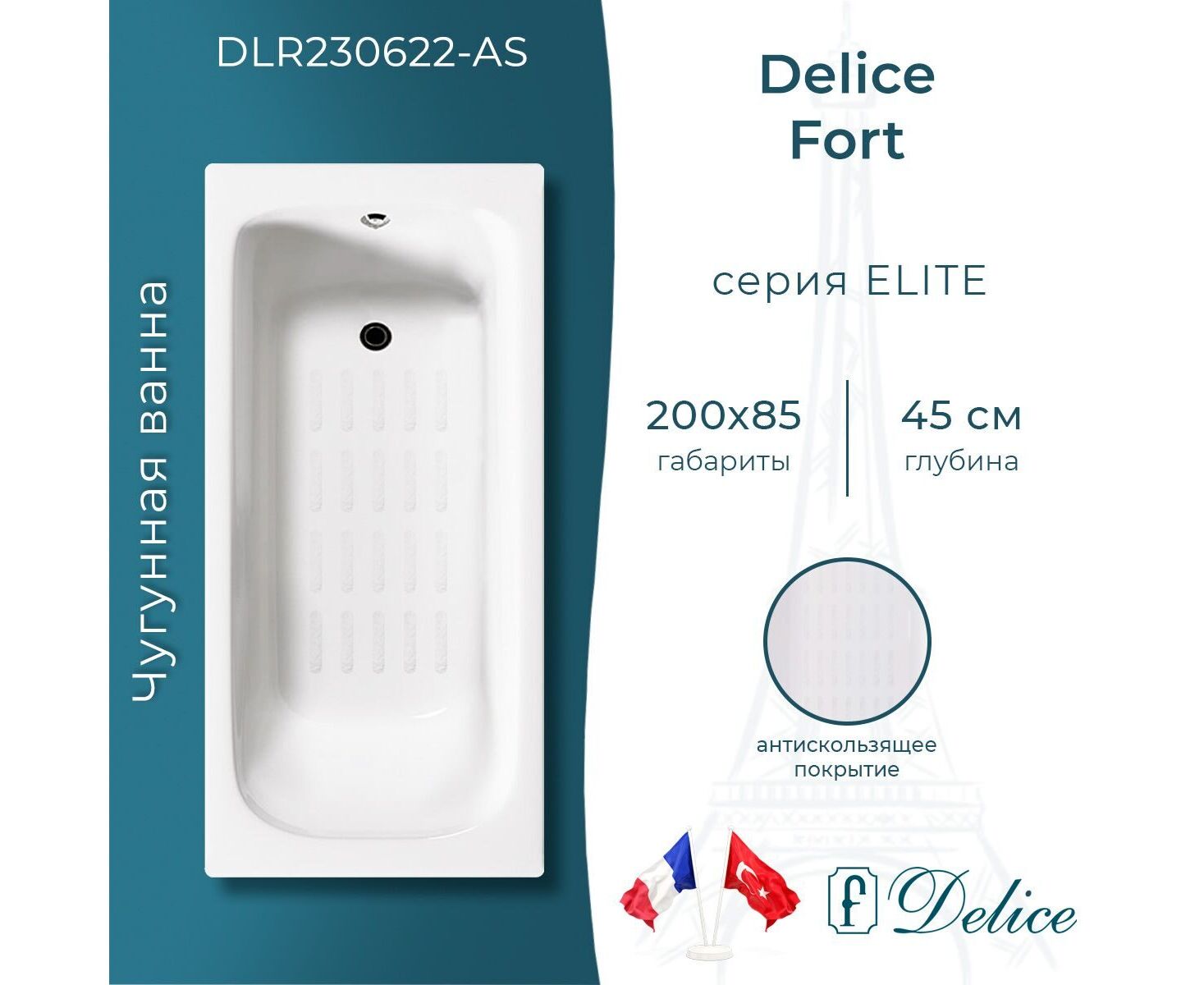 Delice Fort 200х85 с антискользящим покрытием - большая и вместительная чугунная ванна длиной 200 см. Выполнена в классическом дизайне и станет прекрасным дополнением в интерьере ванной комнаты. Модель создана для просторных помещений, где она по праву займет свое достойное место. Красивая и объемная Delice Fort - мечта всех любителей принимать ванну! Анатомически правильная форма ванны обеспечивает комфорт и возможность принимать ванну длительное время.