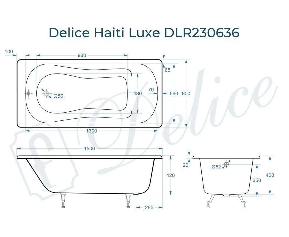 Для установки используются фирменные ножки Delice, которые имеют надежное и прочное крепление, обеспечивают высокую устойчивость ванны и регулируются по высоте. Высота на ножках варьируется от 51 до 59 см. Ножки выполнены из высокопрочного чугуна марки СЧ25, который выдерживает большие нагрузки. С помощью регулировки можно нивелировать геометрические отклонения пола, стен и углов в ванной комнате. Для модели Haiti Luxe подходит комплект ножек для серии Elite - артикул DLR000033.