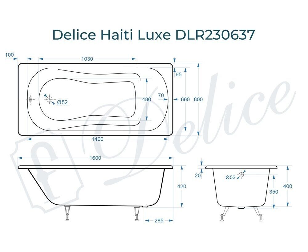 Для установки используются фирменные ножки Delice, которые имеют надежное и прочное крепление, обеспечивают высокую устойчивость ванны и регулируются по высоте. Высота на ножках варьируется от 51 до 59 см. Ножки выполнены из высокопрочного чугуна марки СЧ25, который выдерживает большие нагрузки. С помощью регулировки можно нивелировать геометрические отклонения пола, стен и углов в ванной комнате. Для модели Haiti Luxe подходит комплект ножек для серии Elite - артикул DLR000033.