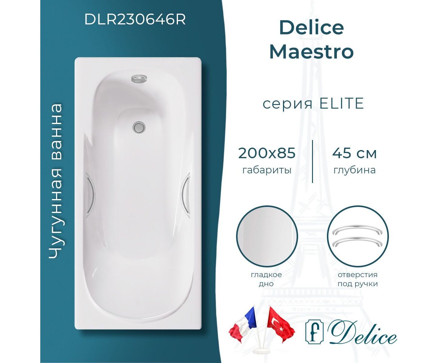Ванна чугунная Delice Maestro 200х85 с отверстиями под ручки DLR230646R