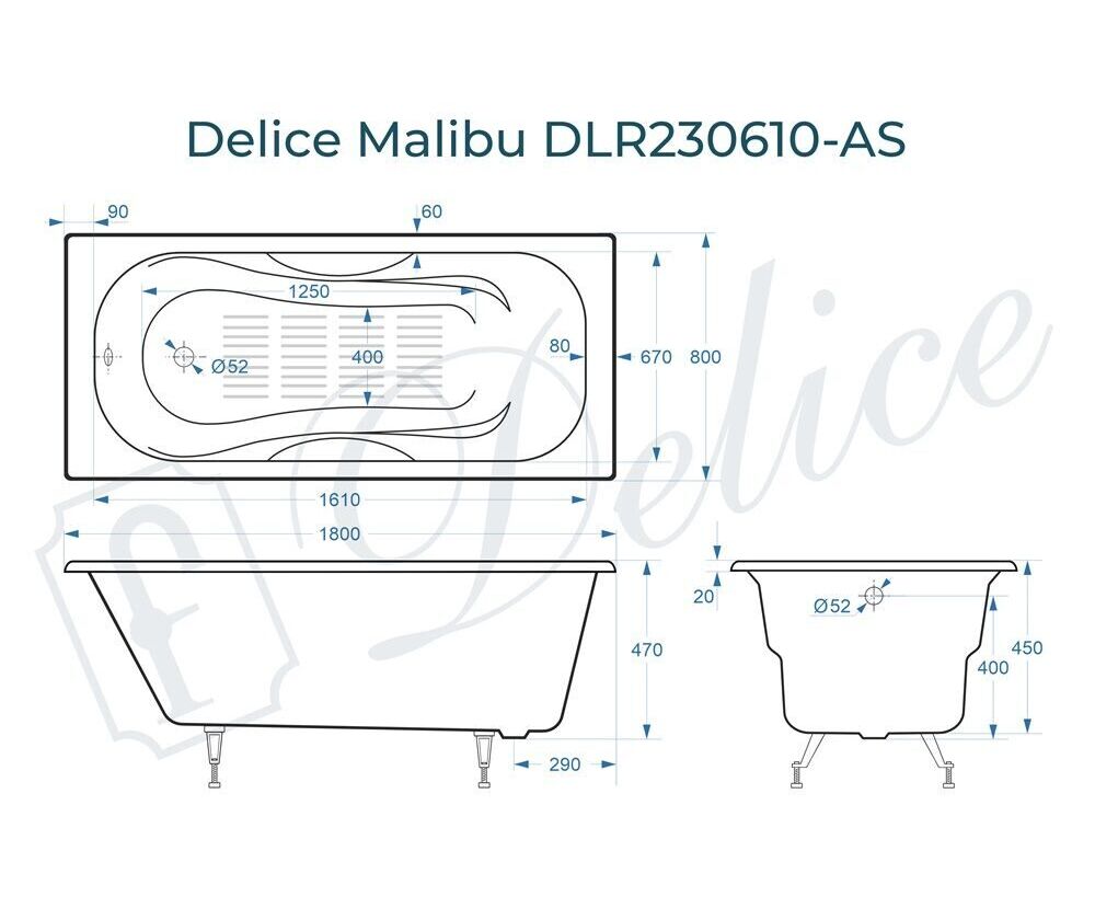 Для установки используются фирменные ножки Delice, которые имеют надежное и прочное крепление, обеспечивают высокую устойчивость ванны и регулируются по высоте. Высота на ножках варьируется от 58 до 62.5 см. Ножки выполнены из высокопрочного чугуна марки СЧ25, который выдерживает большие нагрузки. С помощью регулировки можно нивелировать геометрические отклонения пола, стен и углов в ванной комнате. Для модели Malibu подходит комплект ножек для серии Elite - артикул DLR000002.