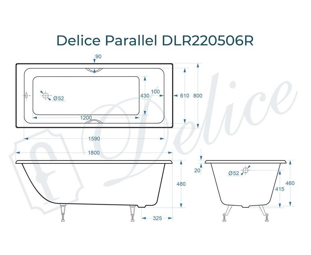 Для установки используются фирменные ножки Delice, которые имеют надежное и прочное крепление, обеспечивают высокую устойчивость ванны и регулируются по высоте. Высота на ножках варьируется от 61 до 66.5 см. Ножки выполнены из высокопрочного чугуна марки СЧ25, который выдерживает большие нагрузки. Для модели Parallel подходят ножки для серии Comfort (артикул DLR000001).