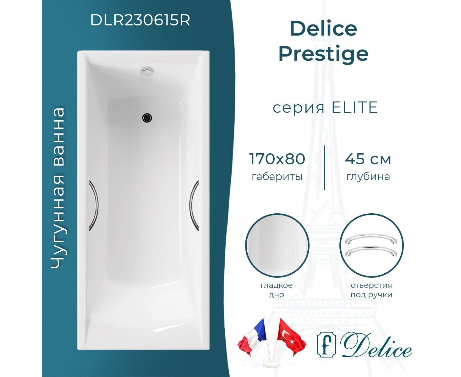 Ванна чугунная Delice Prestige 170х80 с отверстиями под ручки DLR230615R