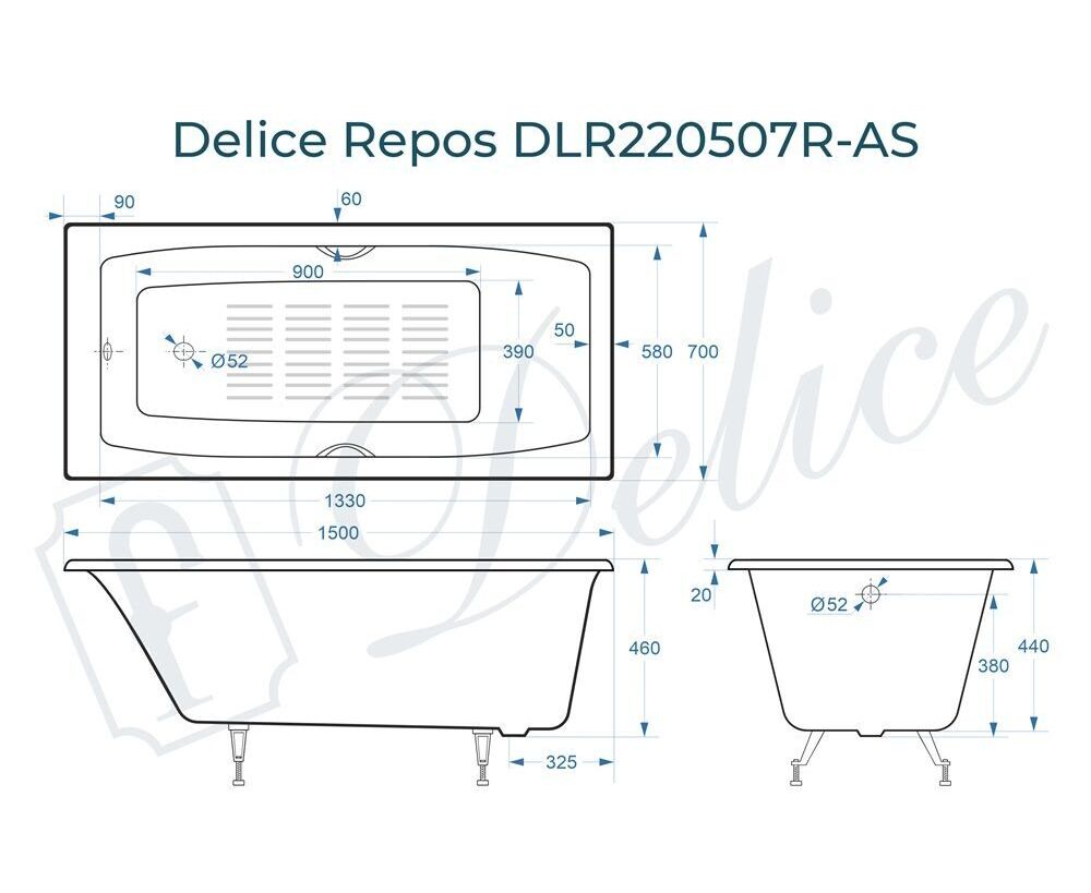 Данная модификация Delice Repos имеет противоскользящее покрытие дна, которое гарантирует безопасный и комфортный прием ванны и душа. Покрытие наносится специальным оборудованием на производстве в виде тонких полос, практически не заметно визуально и не ощущается при использовании.