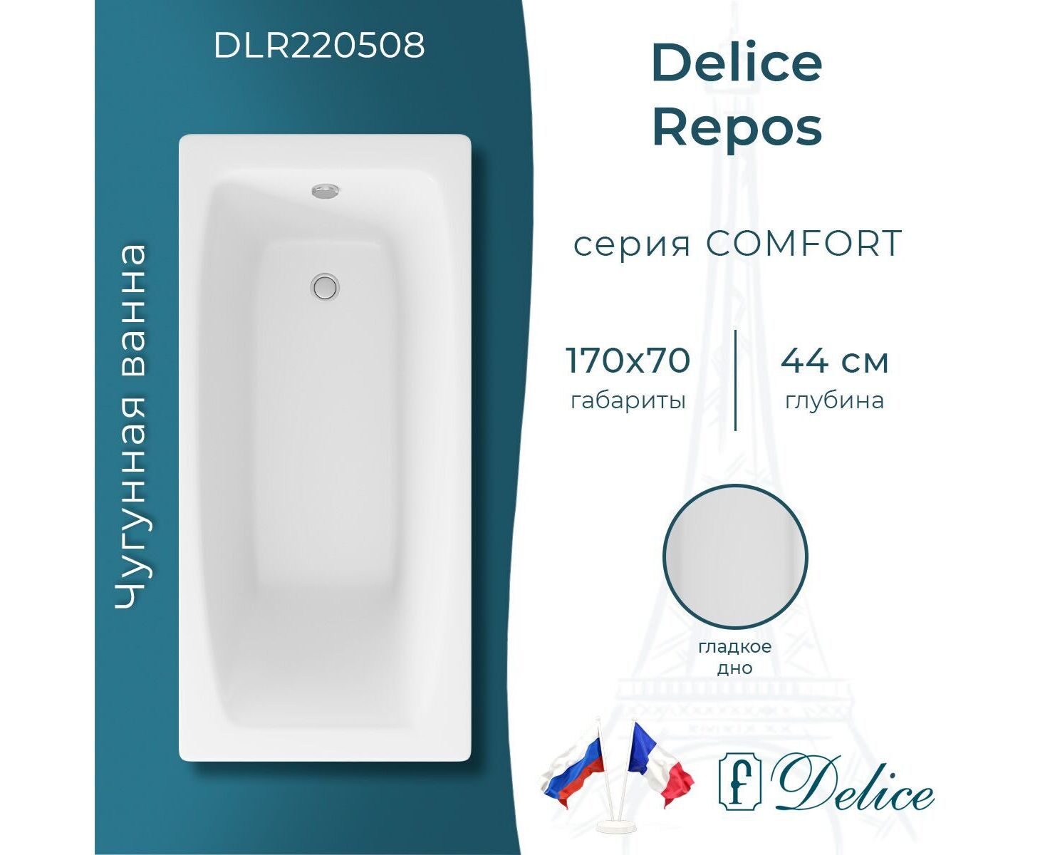 Описание чугунной ванны Delice Repos 170х70