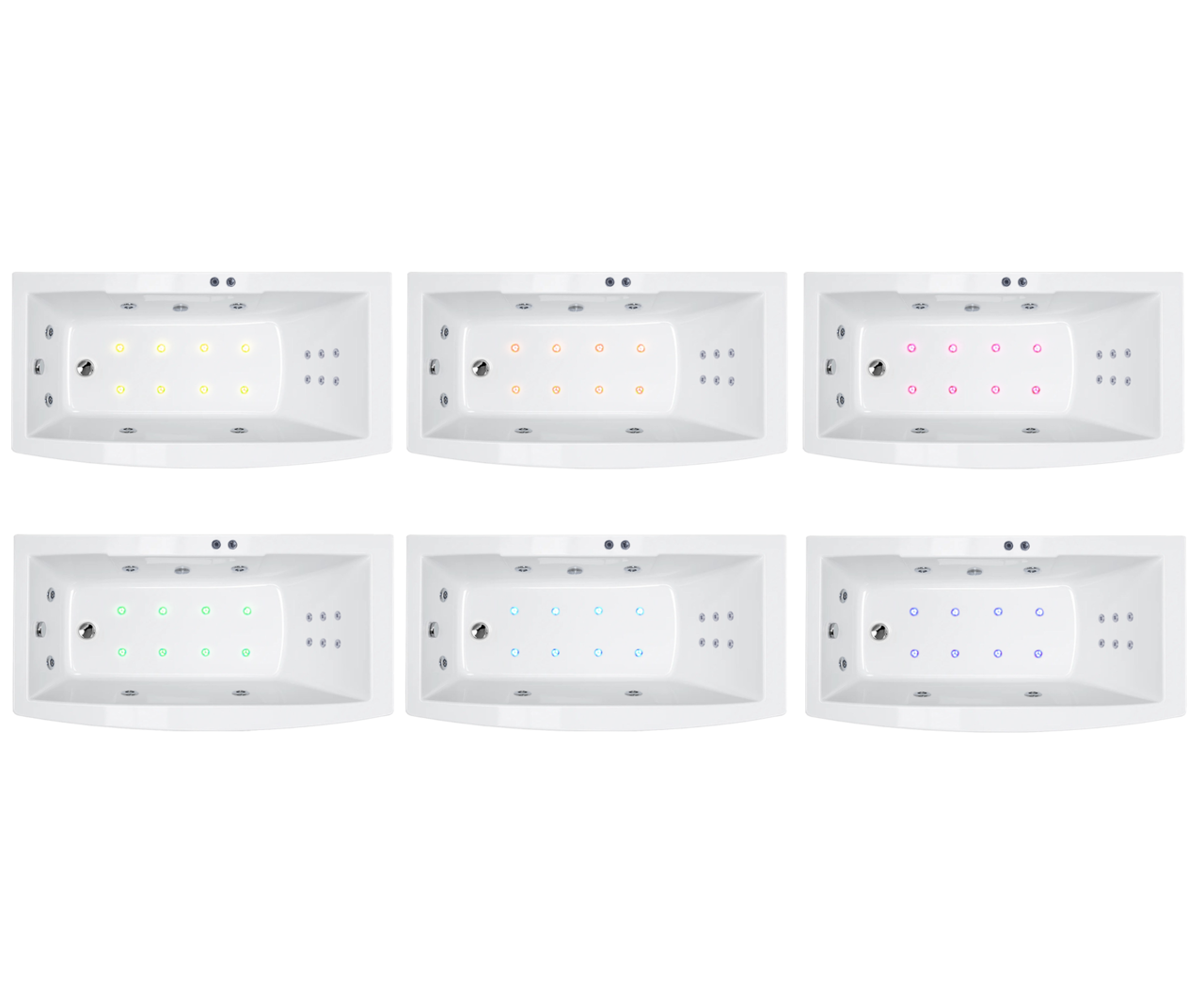 Управление: механическое. Электропитание, В: 220. Зона гидромассажа: боковая, для ног, для спины. Аэромассаж: есть, уже установлена. Вид аэромассажа: аэромассаж с хромотерапией. Датчик уровня воды: установка по желанию. Подогрев воды: установка по желанию.
