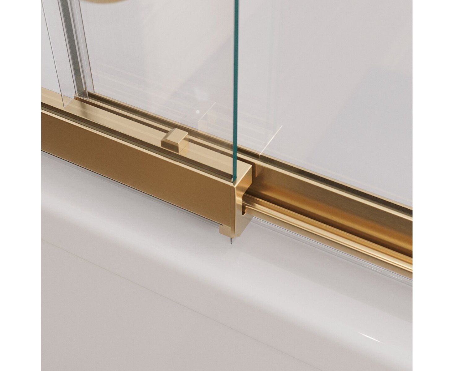 Безопасное закаленное стекло толщиной 5 мм заключено в раму из профиля цвета "брашированное золото".