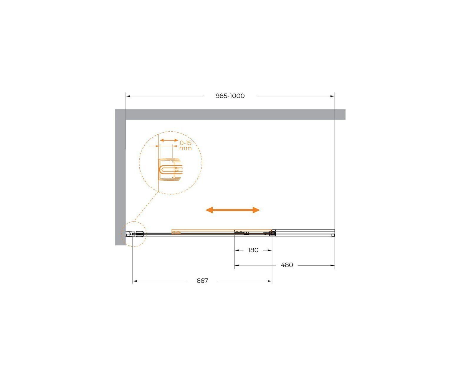 Шторка для ванны оснащена новейшей выдвижной конструкцией, позволяющей значительно увеличить зону принятия душа без опасения забрызгать пол. Вам не нужно поворачивать створку шторки, чтобы войти в ванну для принятия душа.