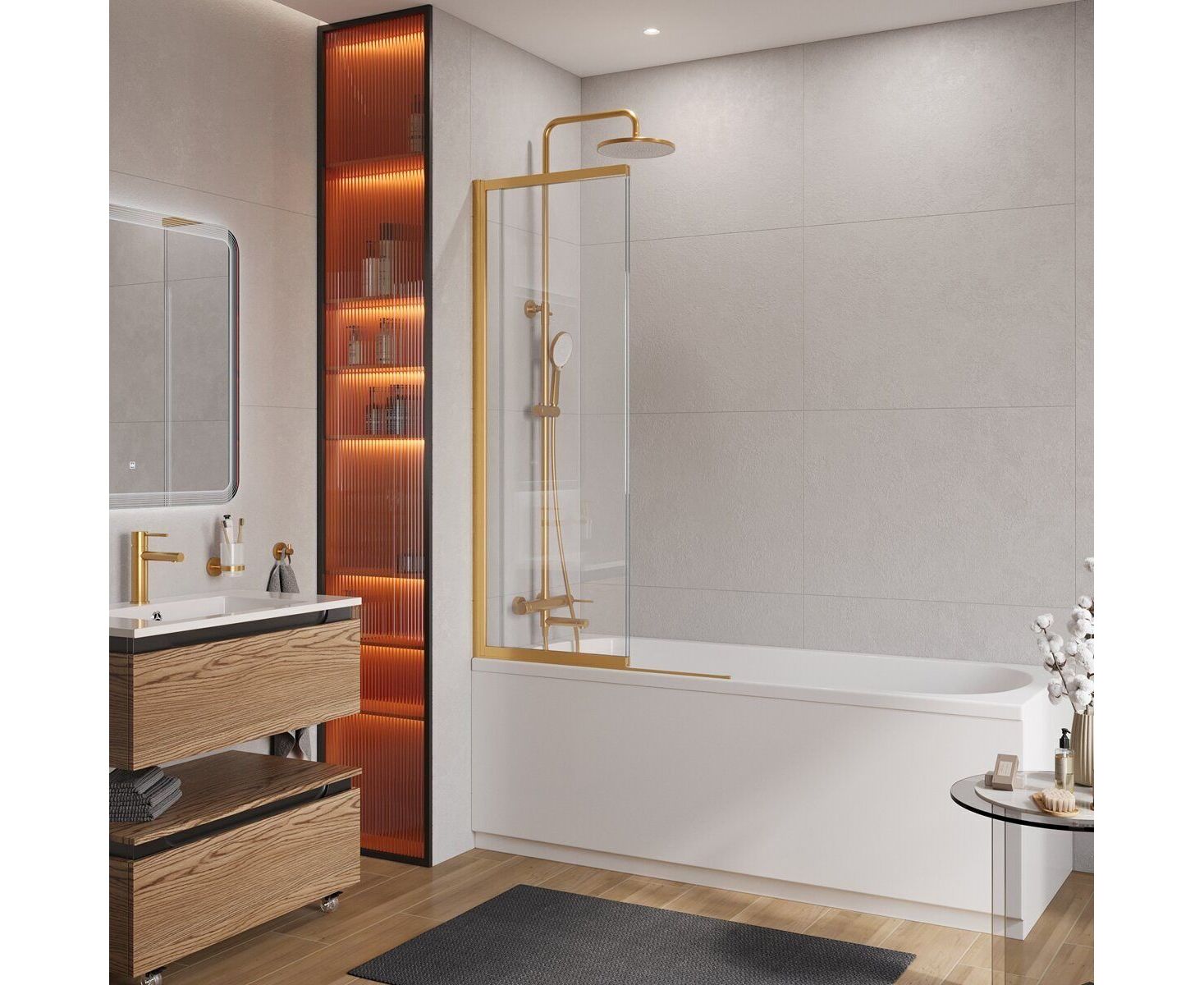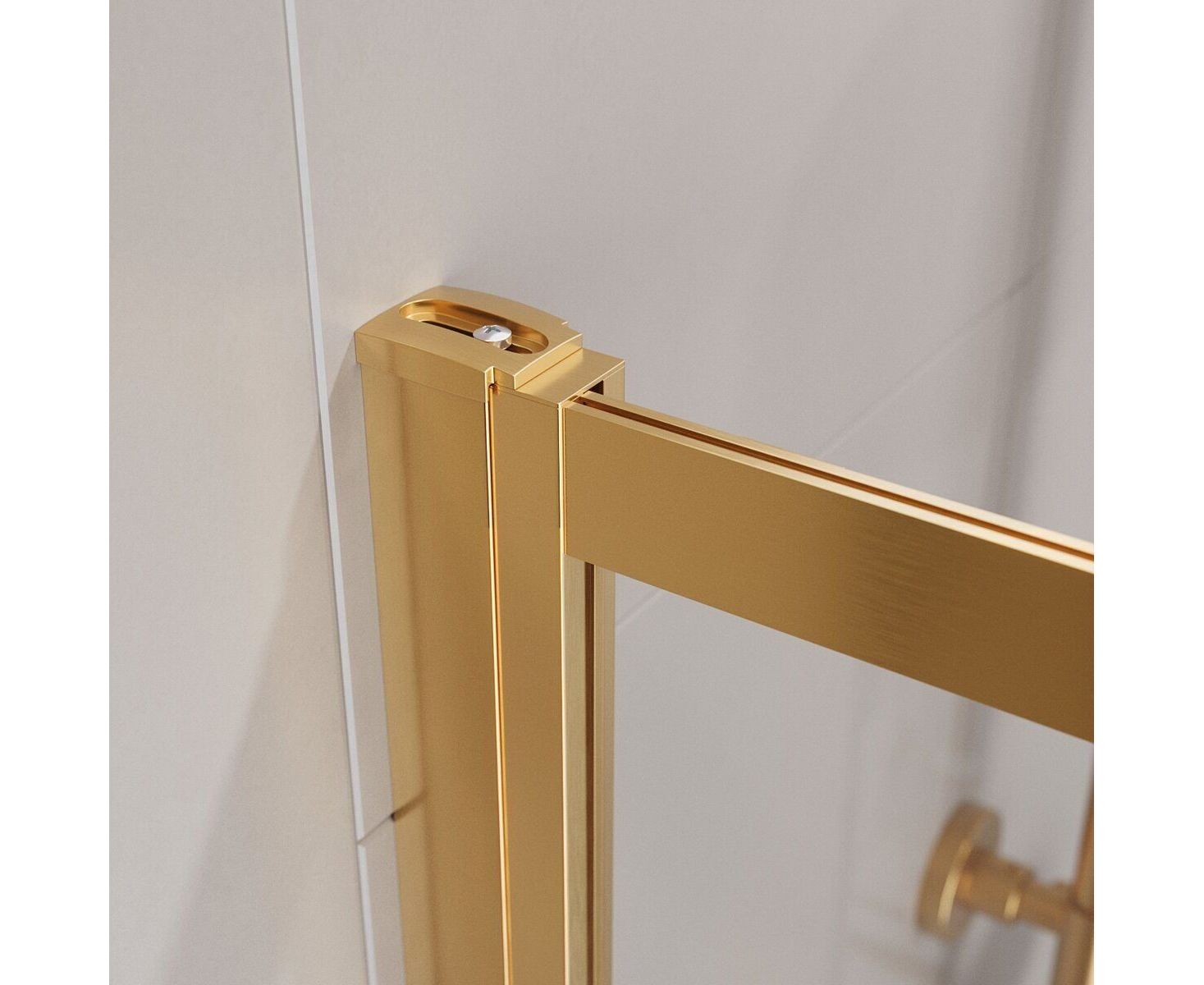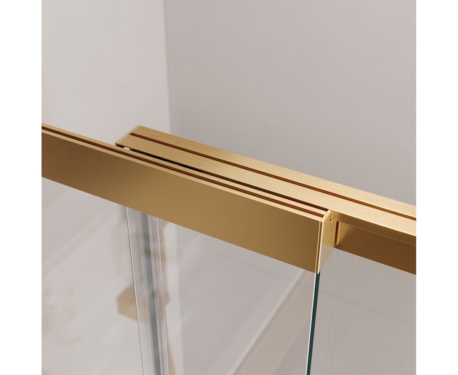 Безопасное закаленное стекло толщиной 5 мм заключено в раму из профиля цвета "брашированное золото".